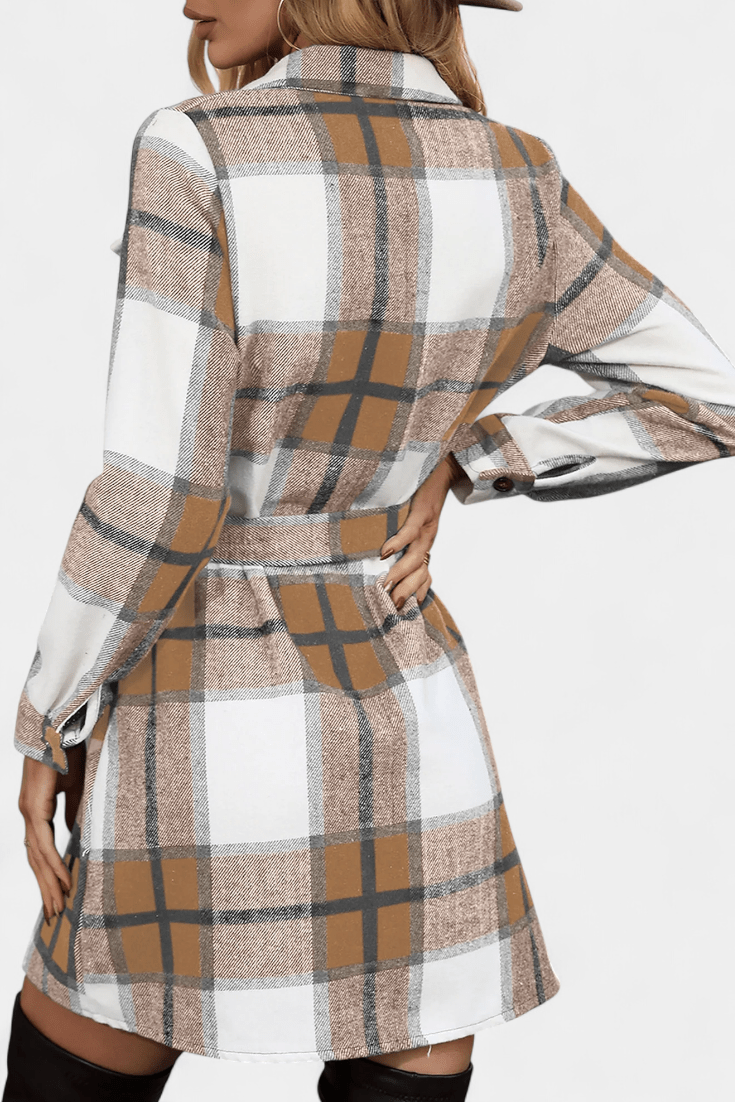 Sofia | Mini kjole er en ungdommelig, men tidløs kjole, der forener klassisk udtryk med moderne design. Skjortekragemodellen giver en frisk, funktionel silhuet og passer lige så godt til hverdagsbrug som til byens arrangementer. Det justerbare taljebælte fremhæver taljen og skaber en flatterende kurve, mens rutemønsteret balancerer tradition og nutidig appel. Mini-længden giver bevægelse og elegance uden at kompromittere stil. Med omtanke for håndværk og materialer af premium kvalitet tilbyder Sofia en varig værdi og en eksklusivitet, hvor begrænset produktion understreger kjolens prestige og samlerappel.