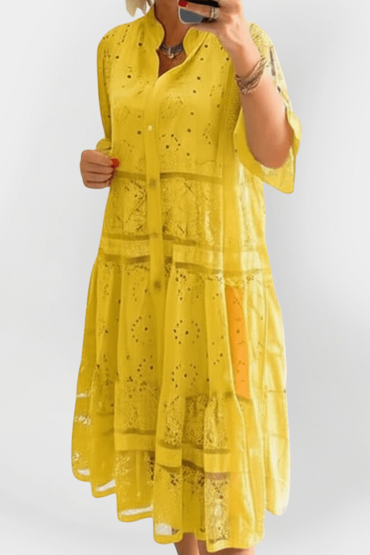 3/4-lange blondeærmer og en diskret krave skaber et romantisk, moderne look.