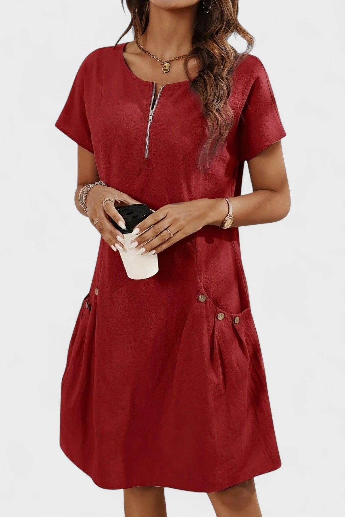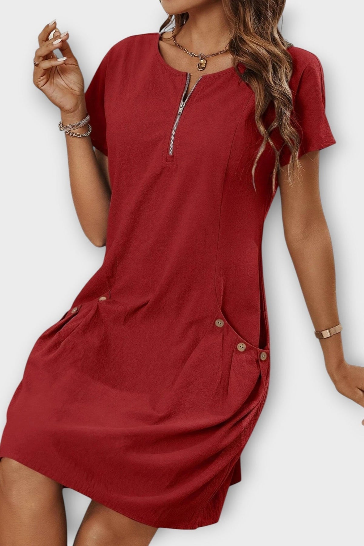 Mette | Lynlås Minikjole møder enkelhed og raffinement i en vinrød, kortærmet kjole. Den rene silhuet giver en løs pasform, der flatterer alle kropsformer uden at begrænse bevægelsen. Den dybe nuance tilfører varme og tidløs stil, som nemt kan opgraderes til både hverdag og særlige øjeblikke. Kjolen er skabt med fokus på håndværk og materialekvalitet, og dens lette konstruktion gør den til et varigt element i garderoben. Som del af vores kollektion signalerer den elegance og en diskret appel til samleren, der værdsætter klassisk design og en fornuftig provenance.