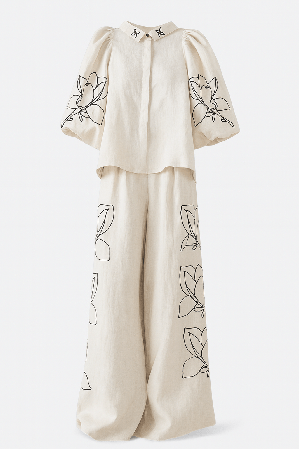 Silje | Bluse sæt forener naturlig komfort med tidløs elegance fra et dansk designhus. Sættet er fremstillet i en bomulds-lin-blanding, der ånder og føles let på varme dage, mens pufærmer og bredt ben skaber en luftig silhuet. Det blomstrede mønster tilfører et friskt, moderne præg uden at gå på kompromis med raffinementet, hvilket gør Silje-sættet alsidigt til både afslappede dage og særlige øjeblikke. Bevidst begrænset tilgængelighed understreger eksklusiviteten og gør Silje til et ægte samlerobjekt, der står tidløst i garderoben. Sættets konstruktion afspejler håndværkets omhu og den danske designarvs arv, en investering i stil, der fortsat vil værdsættes i mange sæsoner.