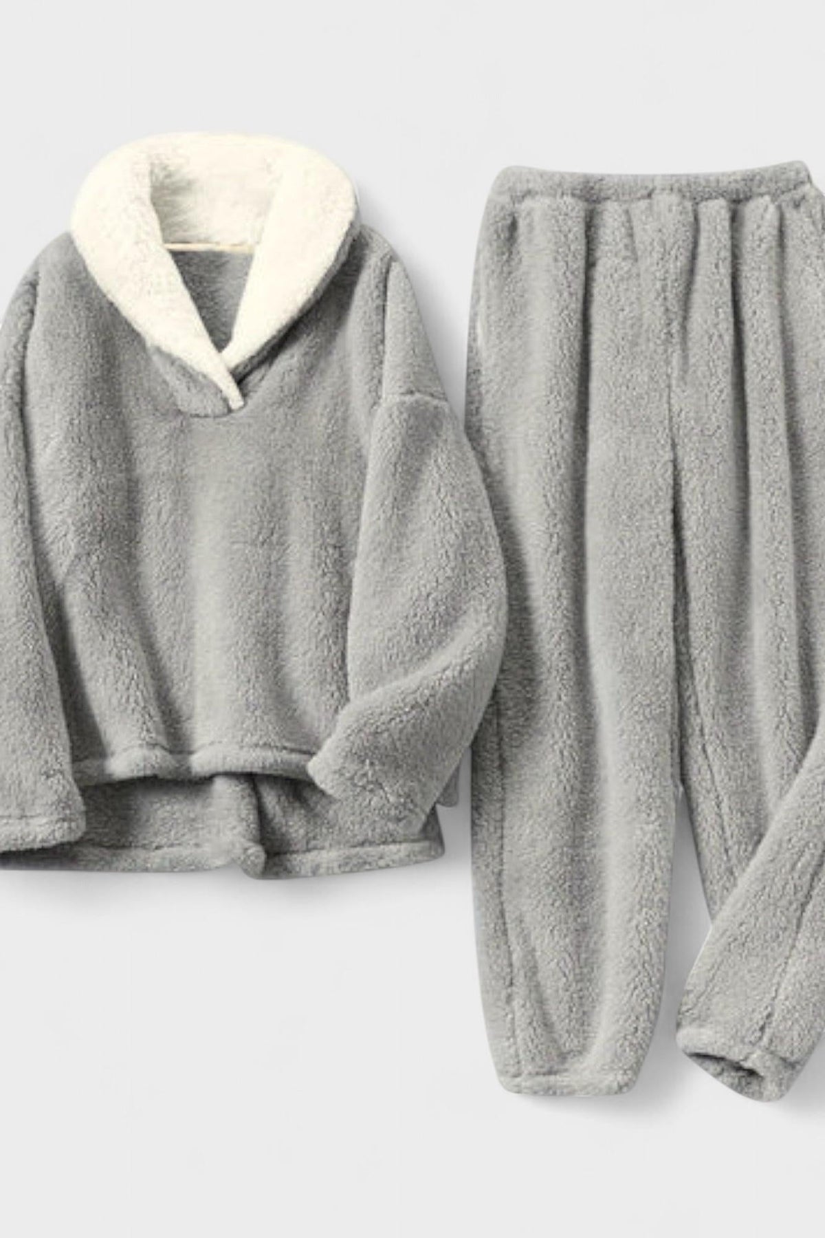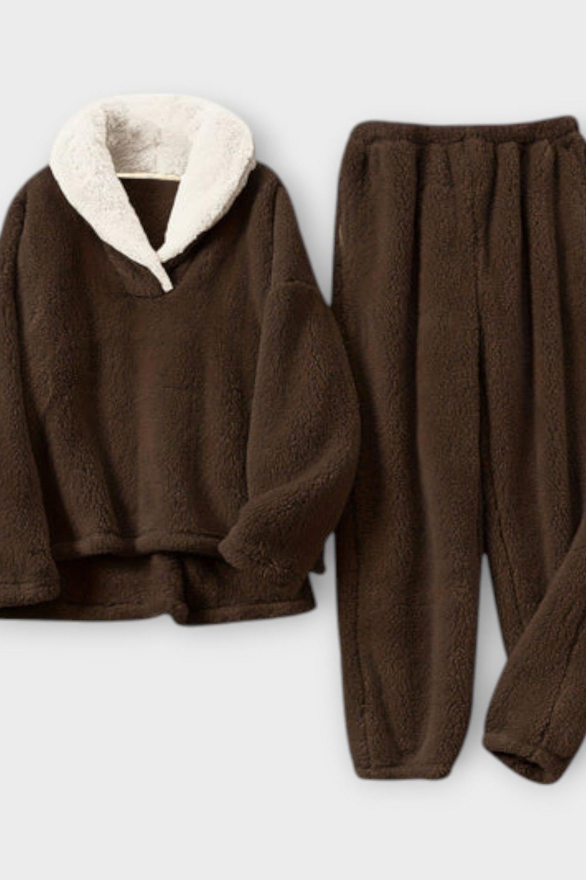 Maja | Flanel sæt forener tidløs elegance med sans for håndværk. Sættet består af en matchende bluse og bukser i samme nuance, fremstillet af blød, varm flanel. Hvert sting vidner om omhyggeligt håndværk og en arv af kvalitetsmaterialer, der står tidens test. Den klassiske knapdesign møder et afslappet snit, så looket forbliver sofistikeret og behageligt. Med begrænset antal til rådighed tilføjes en eksklusivitet og en varig værdi, som appellerer til samlere og dem, der værdsætter bæredygtig stil.