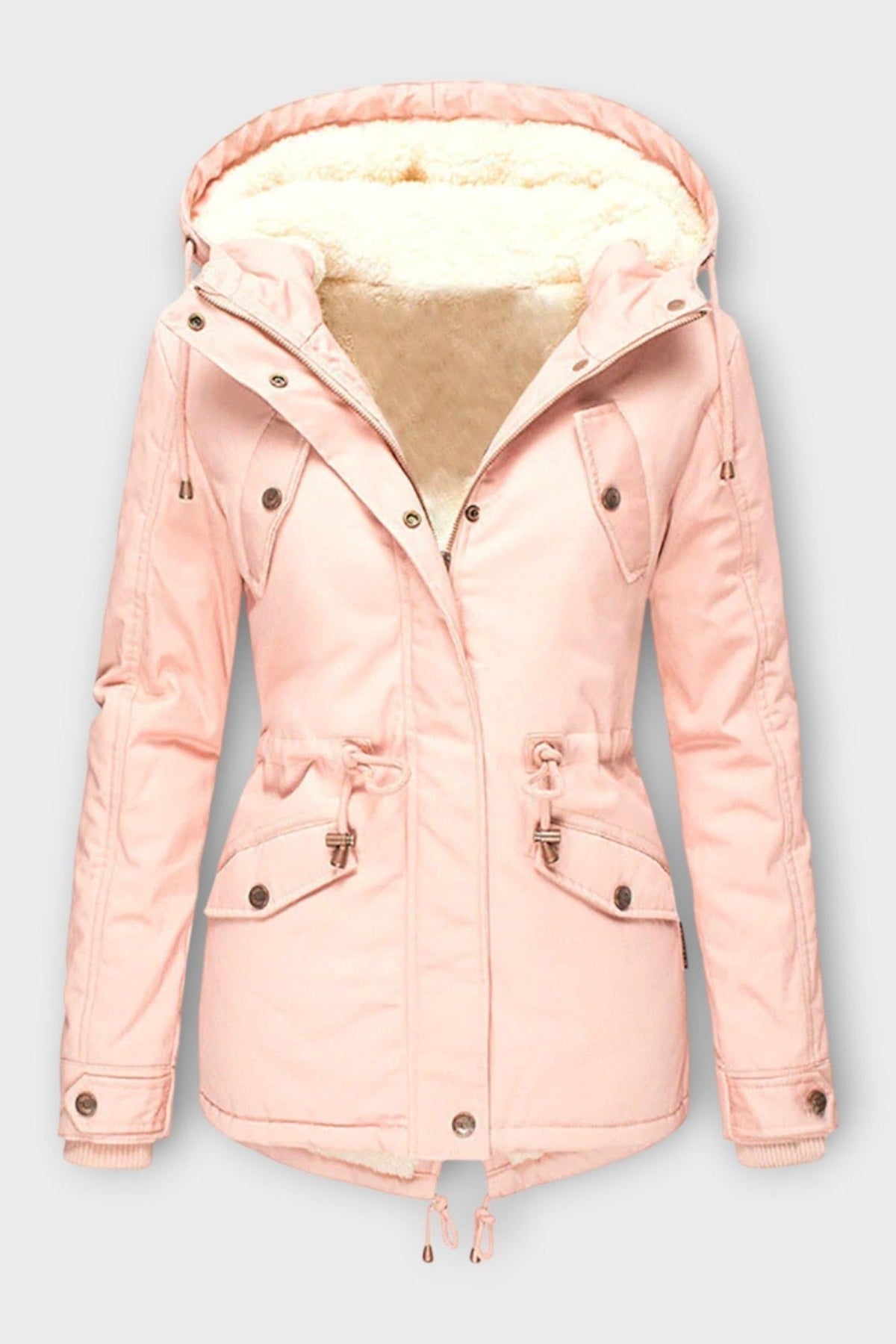- Vandafvisende ydre: Beskytter mod vind og regn samtidig med at silhuetten forbliver feminin.